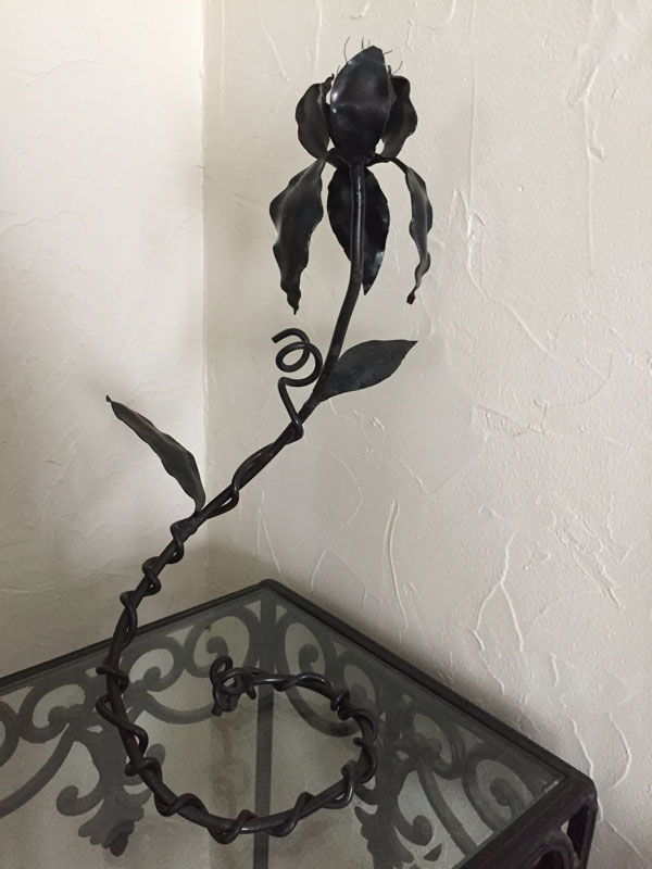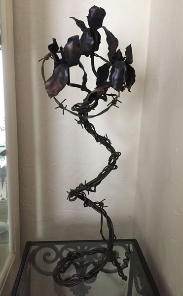 When it comes to my metal sculptures, I tend to like to combine the look of delicacy like flowers, and the abrasive and dangerous element of barbed wire. To me, it's symbolic of the fragility and beauty of life that often exists in parallel to the pain and challenges from which we must blossom in spite of. This has been an ongoing theme throughout my life.